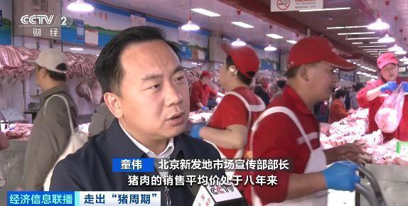 北京新发地市场宣传部部长 童伟:近一个半月的时间里,猪肉的销售平均价处于八年来销售历史上最低的一个价位,在12元每公斤以内,近3到5天刚超过12元每公斤,跟去年同期相比,有27.7%的下降幅度。
